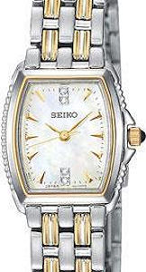Seiko watch model SXGM46 from Seiko Le Grand Sport Collection. Stainless steel case and watch bracelet with gold plated accents, white dial.