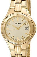 Seiko Sporty Dress quartz watch model SXDA92. Stainless steel gold-tone round case with bracelet. Champaign color dial