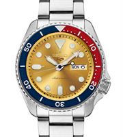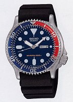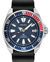 Seiko 5 sports SKX series Pepsi model SRPL99. 100m water resistant, powered by SEIKO 24 jewels 4R36 Japanese Automatic movement with Day/Date calendar. Stainless steel case with uni-directional rotating 0-60 "Pepsi" bezel and steel bracelet. Silver color dial with Lumibrite hands and markers. Limited edition of 7000 pieces.