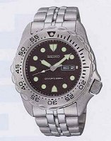 Seiko SHC041 diver wrist watch from Seiko Dive Watches Collection. 200m Water Resistant. SEIKO Japanese Quartz movement with Day/Date calendar. Stainless steel case with uni-directional rotating 0-60 bezel and screw-down crown. black color dial with large luminous markers and hands. Stainless steel watch bracelet.
