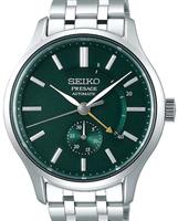 Seiko watch model SUR503 from Seiko Essentials Collection. Stainless steel 40mm case with bracelet, green textured color dial with steel markers. 100 meters water resistant
