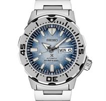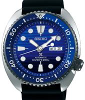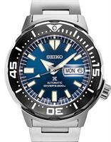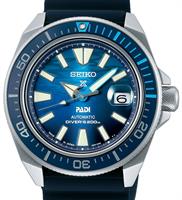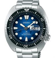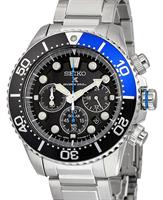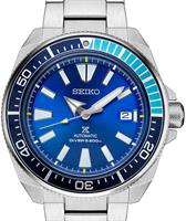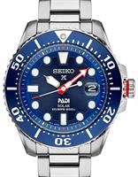 Seiko Prospex Solar Diver watch SNE435 powered by light energy. PADI Special Edition. Stainless steel case with bracelet. One-way rotating 0-60 blue bezel. Blue color dial with date calendar and large luminous hands and markers. Water resistant to 200 meters.