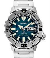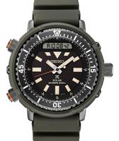 Seiko Prospex diver model SNJ031. Re-issue of the 1980`s bestseller Seiko H558. Beloved by actor and strongman Arnold Schwarzenegger, who owned and wore it in several blockbuster hits, the watch is now nicknamed the "Arnie" in his honor. Powered by Seiko`s solar quartz movement, the watch only requires light to run. Green stainless steel case with a plastic shroud in the tuna-can style. Black dial with luminous diver dots and hands. Uni-directional bezel with 0-60 insert. Hardlex mineral glass crystal. Ultra soft green silicone strap with stainless steel clasp and holder. PADI special edition.