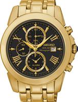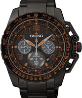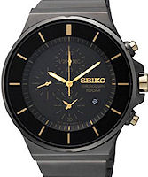 Seiko chronograph watch model SNDD57 from Seiko Sport Collection. Stainless steel black plated case and bracelet, black dial with gold tone accents