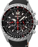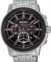 Seiko chronograph watch model SNDD61 from Seiko Sport Collection. Stainless steel black plated case and rubber strap, black dial with red accents