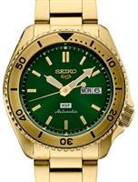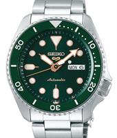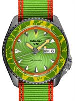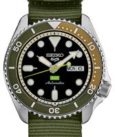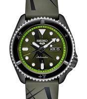 Seiko 5 sbsa095 sports wrist watch. Limited edition of 6,500 pieces. 100m water resistant, powered by SEIKO 24 jewels 4R36 Japanese Automatic movement with Day/Date calendar. Stainless steel case with uni-directional rotating 0-60 bezel and green nylon strap with yellow stripe. Green color dial with Lumibrite hands and markers.