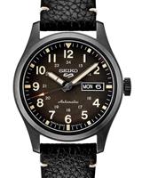 Seiko SKA557 wrist watch from Seiko Men`s Sport Watches Collection. 100m Water Resistant. SEIKO Japanese Quartz movement with Date calendar. Stainless steel black plated case with black leather strap. Black color dial with green accents.