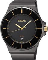 Seiko SGEG19 wrist watch from Seiko Men`s Sport Watches Collection. 100m Water Resistant. SEIKO Japanese Quartz movement with Date calendar. Stainless steel black ion plated case and bracelet. Black color dial with gold accents.