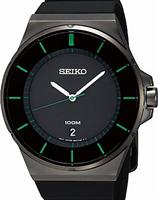 Seiko SGEG23 wrist watch from Seiko Men`s Sport Watches Collection. 100m Water Resistant. SEIKO Japanese Quartz movement with Date calendar. Stainless steel black ion plated case. Black color dial with green color accents. Black rubber band.