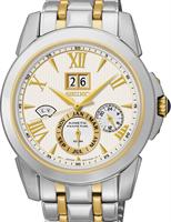 Seiko watch model SXGM46 from Seiko Le Grand Sport Collection. Stainless steel case and watch bracelet with gold plated accents, white dial.