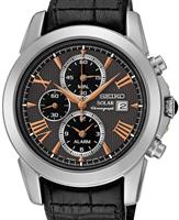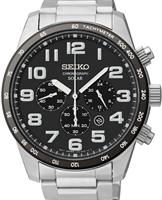 Seiko SNA139 chronograph watch from Seiko Chronographs Collection. 200m Water Resistant. SEIKO Japanese Quartz chronograph movement with Date calendar. Titanium case and watch bracelet. Black color dial with luminous hands and Arabic markers.