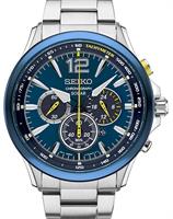 Seiko chronograph watch model SNDC97 from Seiko Le Grand Sport Collection. Stainless steel case and watch bracelet, blue dial