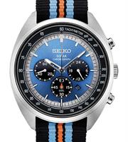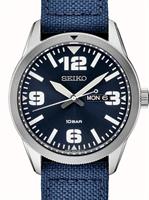 Seiko watch model SUR491 from Seiko Essentials Collection. Stainless steel case with blue nylon, blue color dial with luminous hands and markers. 100 meters water resistant