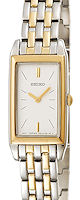Seiko quartz watch model SUJF76. Stainless steel rectangular 2-tone case with bracelet. White color dial