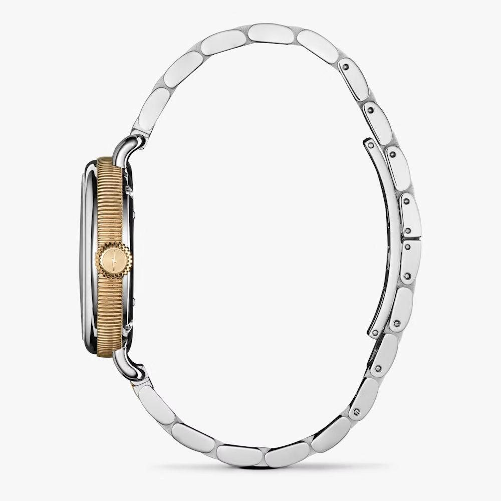 Solid Stainless steel. Gold electroplated accents.