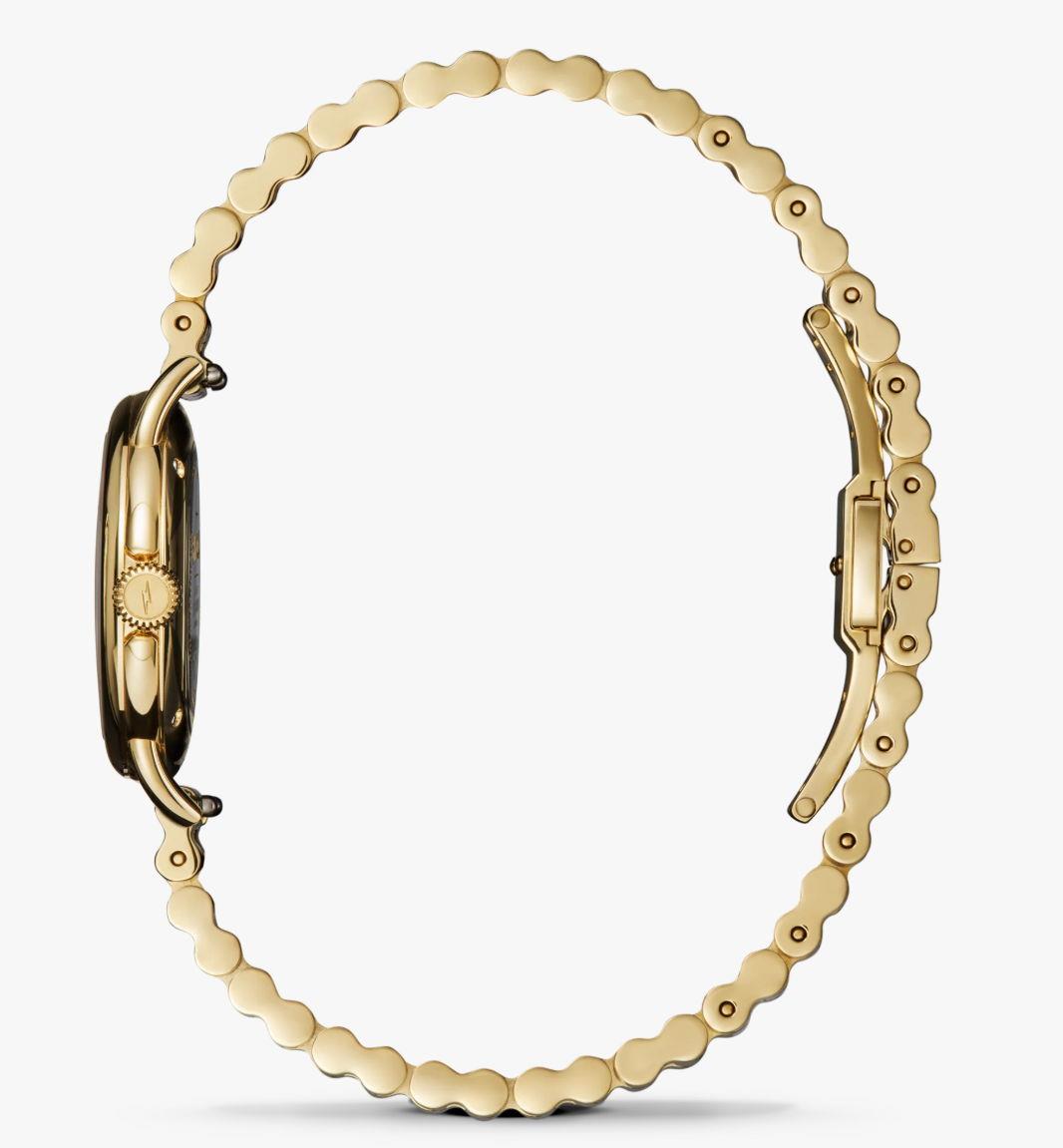Solid Stainless steel. Gold PVD (Physical vapor deposition) finish.
