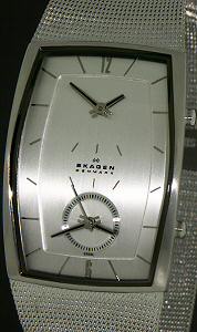 Skagen Steel Dual Time watch with Skagen signature steel mesh band powered by 2 independent quartz movements. Silver color dial, stainless steel case.