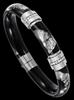 Soho sterling silver and black enamel 9mm hinged bangle with gold leaf inlay and diamonds (0.24 CTW). Handcrafted in Italy.