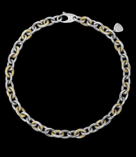 Soho sterling silver and golden enamel link necklace with white gold leaf inlay . Fit up to a 16" neck. Handcrafted in Italy.
