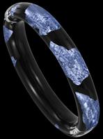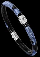 Soho sterling silver and black enamel 5mm hinged bangle with blue leaf inlay. Handcrafted in Italy.