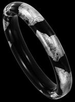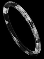 Soho sterling silver and black enamel 9mm hinged bangle with silver leaf inlay. Handcrafted in Italy.