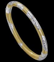 Soho sterling silver and yellow enamel 5mm hinged bangle with white leaf inlay. Handcrafted in Italy.