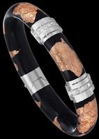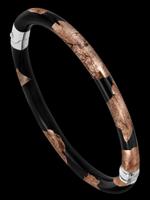 Soho sterling silver and black enamel 5mm hinged bangle with rose gold leaf inlay. Handcrafted in Italy.