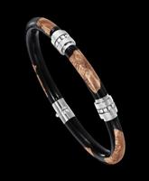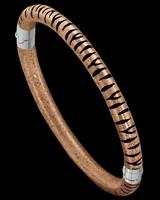 Soho sterling silver and rose gold tone enamel 5mm hinged bangle with black tiger stipes. Handcrafted in Italy.