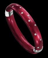Soho sterling silver and red enamel 5mm hinged bangle with diamonds. Handcrafted in Italy.