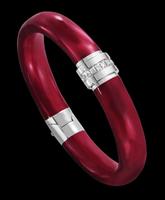 Soho sterling silver and red enamel 11mm hinged bangle with diamonds (0.24 CTW). Handcrafted in Italy.