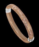 Soho sterling silver and rose gold tone enamel 9mm hinged bangle with rose gold leaf inlay. Handcrafted in Italy.