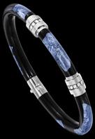 Soho sterling silver and black enamel 11mm hinged bangle with blue leaf inlay. Handcrafted in Italy.