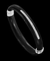 Soho sterling silver and black enamel 5mm hinged bangle with diamonds. Handcrafted in Italy.