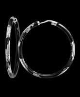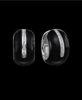 Soho sterling silver and black enamel hoop earrings with white gold leaf inlay and Sterling Silver. Diamonds (0.14 CTW) . Handcrafted in Italy.