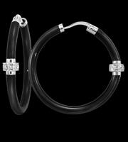 Soho sterling silver and black enamel hoop earrings with diamonds (0.14 CTW). Handcrafted in Italy.