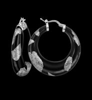 Soho sterling silver and black enamel puffy hoop earrings with white gold leaf inlay. Handcrafted in Italy.