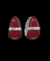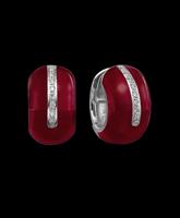 Soho sterling silver and black enamel hoop earrings with red leaf inlay. Diamonds (0.14 CTW) . Handcrafted in Italy.