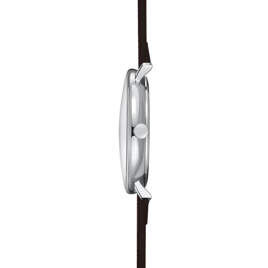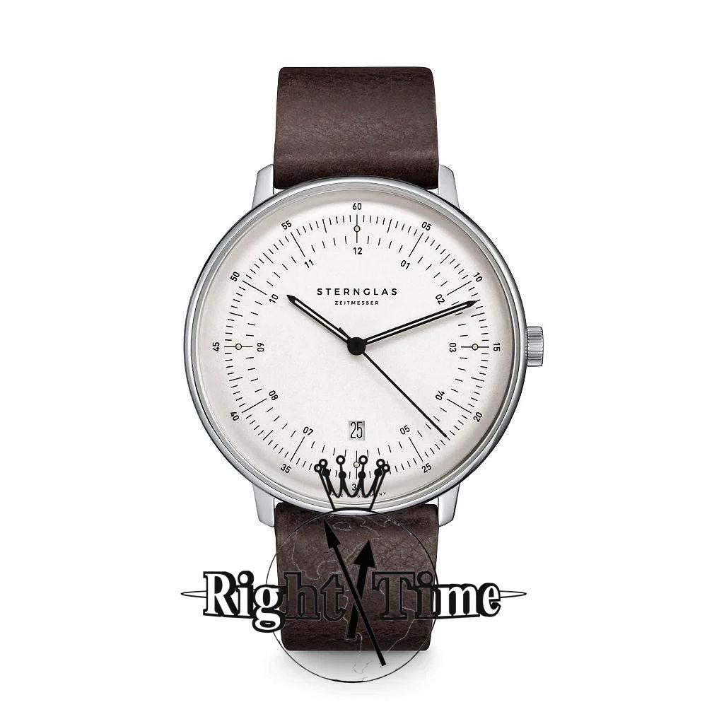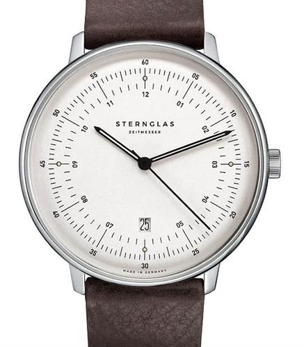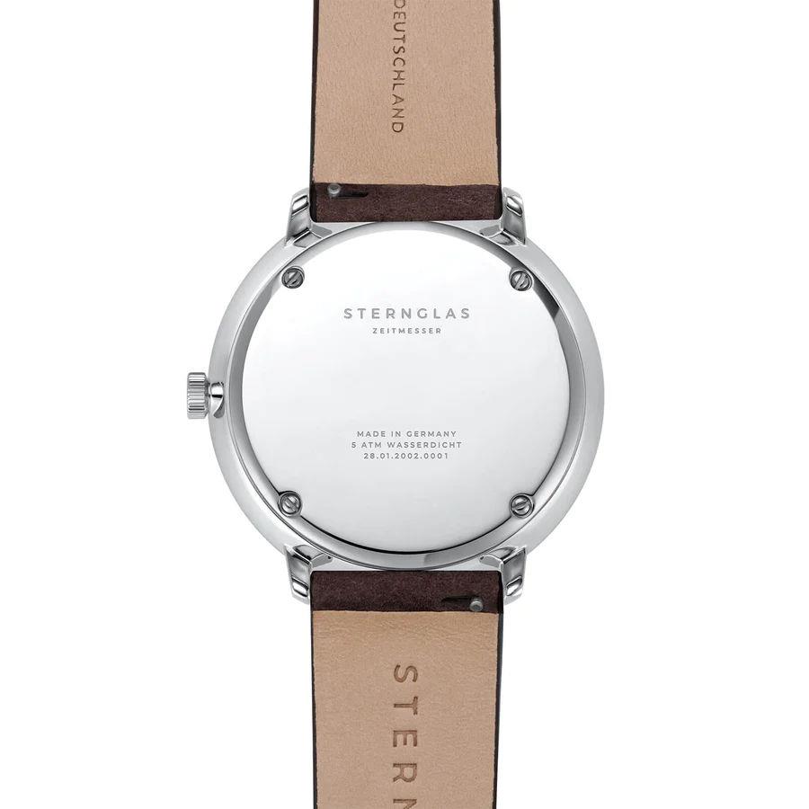 Sternglas Hamburg watch model S01-HH10-V111 powered by quartz movement. 316L stainless steel 42mm ultra thin case with brown leather band. Sapphire crystal. Silver color dial. Water resistant to 50 meters.