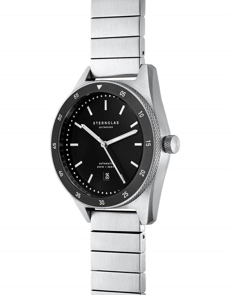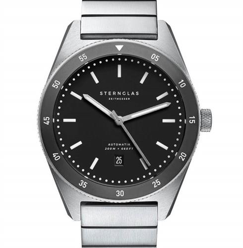 Sternglas Marus watch model S02-MA03-ME03 powered by Japanese automatic movement. 316L stainless steel case with bracelet and black 0-60 bezel. Sapphire crystal. Black dial with date. Water resistant to 200 meters.