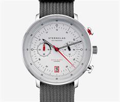 Sternglas Hamburg watch model S01-HC10-FI04 powered by quartz chronograph movement. 316L stainless steel polished case with grey NATO strap. Sapphire crystal. Silver color dial. Water resistant to 50 meters.