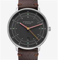 Sternglas Hamburg watch model S01-HH39-VI11 powered by quartz movement. 316L stainless steel 42mm ultra thin case with brown leather band. Sapphire crystal. Black graphite color dial. Water resistant to 50 meters.