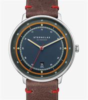 Sternglas Hamburg Edition Argo watch model S01-HHA06-EB03 powered by quartz movement. 316L stainless steel 42mm ultra thin case with brown leather band. Sapphire crystal. Contrasting blue, orange and green color dial. Engraved visualization of the constellation "Argo" on the back. Water resistant to 50 meters. Limited Edition of 1499 pieces.