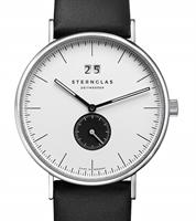 Sternglas Naos watch model SNQ01/104 powered by quartz movement. 316L stainless steel 38mm case with leather band. Sapphire crystal. White dial. Water resistant to 50 meters.