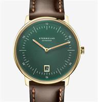 Sternglas Naos watch model S01-NAC22-BR01 powered by Japanese quartz movement. 316L stainless steel gold plated case with brown leather band. Sapphire crystal. Green color dial with date. Limited Edition of 999 pieces.