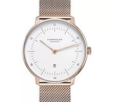 Sternglas Naos watch model SSJ33/407 powered by quartz movement. 316L stainless steel rose gold plated 32mm case with mesh bracelet. Sapphire crystal. Rose gold tone dial. Water resistant to 50 meters.