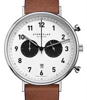 Sternglas watch model S01-CH03-VI14 powered by quartz chronograph movement. 316L stainless steel polished case with brown leather band. Sapphire crystal. "Panda" dial. Water resistant to 50 meters.