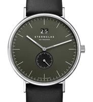 Sternglas Ivo watch model SIV51/108 powered by quartz movement. 316L stainless steel case with black leather band. Sapphire crystal. Green dial with black seconds sub-dial. Water resistant to 50 meters.