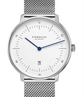Sternglas Naos watch model S01-NA01-Mi04 powered by quartz movement. 316L stainless steel 38mm case with mesh bracelet. Sapphire crystal. White dial. Water resistant to 50 meters.
