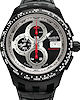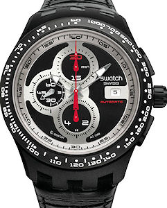 Irony Right Track Black Automatic Chronograph model. ETA chronograph movement. Plastic case, black color dial with date, black leather strap
