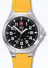 Swiss Army Lady wrist watch model 24105 from Swiss Army Base Camp Line. Stainless steel case with Swiss Quartz movement, black dial with Arabic numerals, luminous hands and markers and date calendar, yellow rubber watch band. Water resistant to 100 meters.